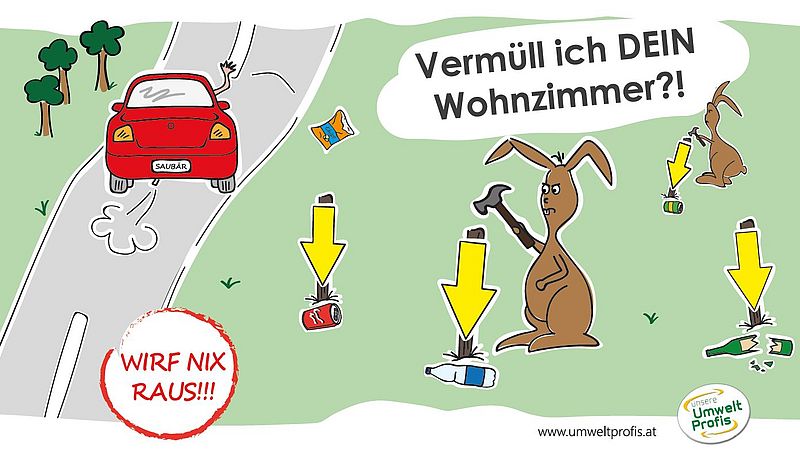 Abfall, der im Freien zurückgelassen wird, bedeutet, neben der Verschmutzung unserer Umwelt, auch einen großen finanziellen Aufwand für die Gemeinden und eine Gefahr für Tiere. Es dauert oft Jahr(zehnt)e bis die Abfälle sich in der Natur abbauen.