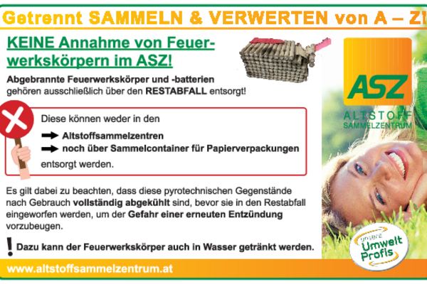Ist Silvester erst vorbei, bleiben abgebrannte und teilweise auch ungenutzte Feuerwerkskörper übrig. Wohin jetzt mit den Dingern? Die Umwelt Profis empfehlen: Ungebrauchte Feuerwerkskörper "ertränken". Abgebrannte Raketen und Böller gehören in den Restmüll - nicht ins ASZ und keinesfalls ins Altpapier.