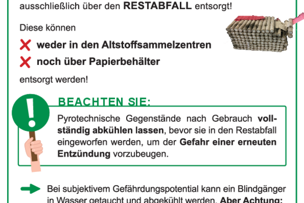Feuerwerkskörper vollständig abkühlen lassen, bevor sie in den Restabfall geworfen werden.