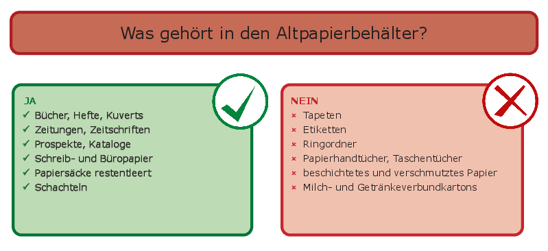Größere Mengen Altpapier und Kartonagen bitte ins Altstoffsammelzentrum bringen. Im Unterschied zur gemischten Haussammlung werden im ASZ Kartonagen getrennt vom Altpapier gesammelt.