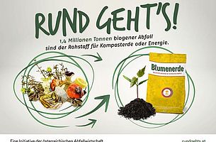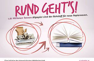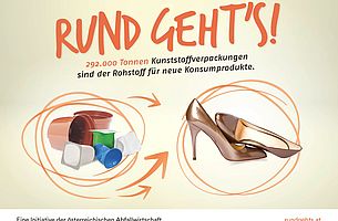 Aus diesem Grund wurde mit allen wichtigen Akteuren der heimischen Abfallwirtschaft die Kampagne „Rund Geht’s“ entwickelt. Diese folgt den Spuren unserer Reste und holt die vielfältigen Kreisläufe vor den Vorhang: Wussten Sie, dass aus Altpapier neues Papier produziert wird? Wahrscheinlich schon. Aber wie sieht’s mit folgenden Beispielen aus: aus Elektroaltgeräten werden Gold und Silber für Schmuck gewonnen, Kunststoffverpackungen werden zu Granulaten für Gartenmöbel oder Stöckel von High Heels und Eisen aus Autowracks findet sich in Windradstehern wieder!