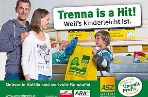 Unter dem Motto „Trenna is a Hit“ ist dieses Projekt bereits seit 2013 bekannt. Ziel des Projekts ist es, die Oberösterreicher*innen darauf aufmerksam zu machen, dass Abfalltrennung wichtig ist – und zwar in ökologischer wie auch in ökonomischer Hinsicht.